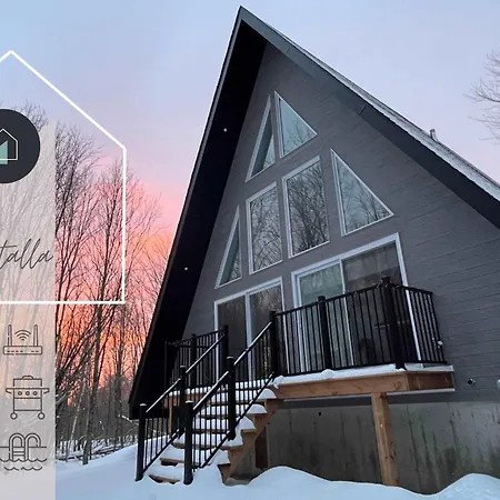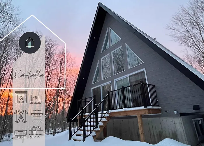 Vila Vila Kartalla - The A Frame Experience In Tremblant je situována 25-minutovou chůzí od Lac Quebec ve městě Saint-Remi-d'Amherst, nabízí ubytování s kompletní kuchyní. Vnitřní dvorek, přístroj na přípravu kávy/čaje a vysokorychlostní internet jsou k dispozici během vašeho pobytu v této vile.